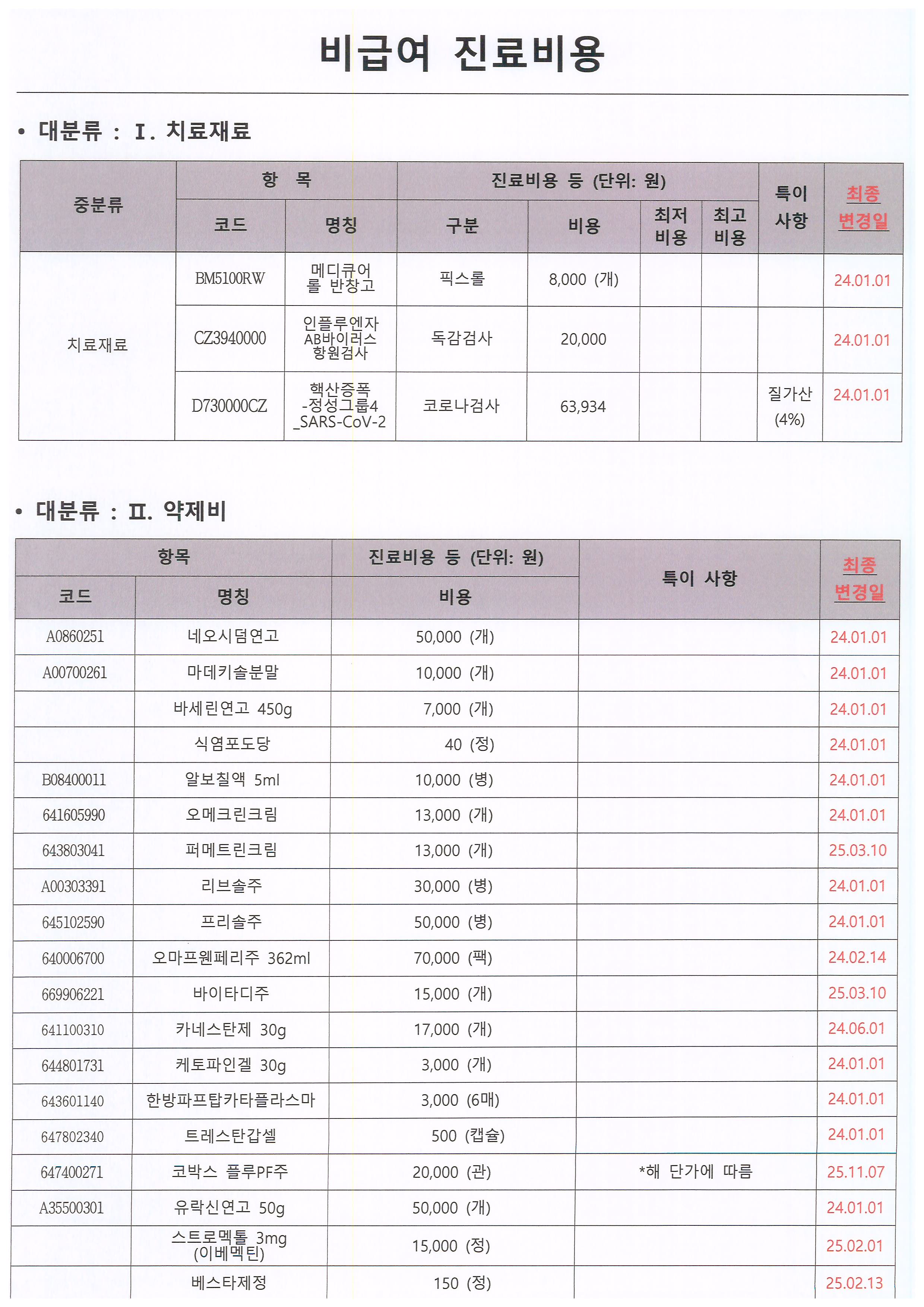 ★★★★2026.01.01 기준 비급여 고시 1★★★★